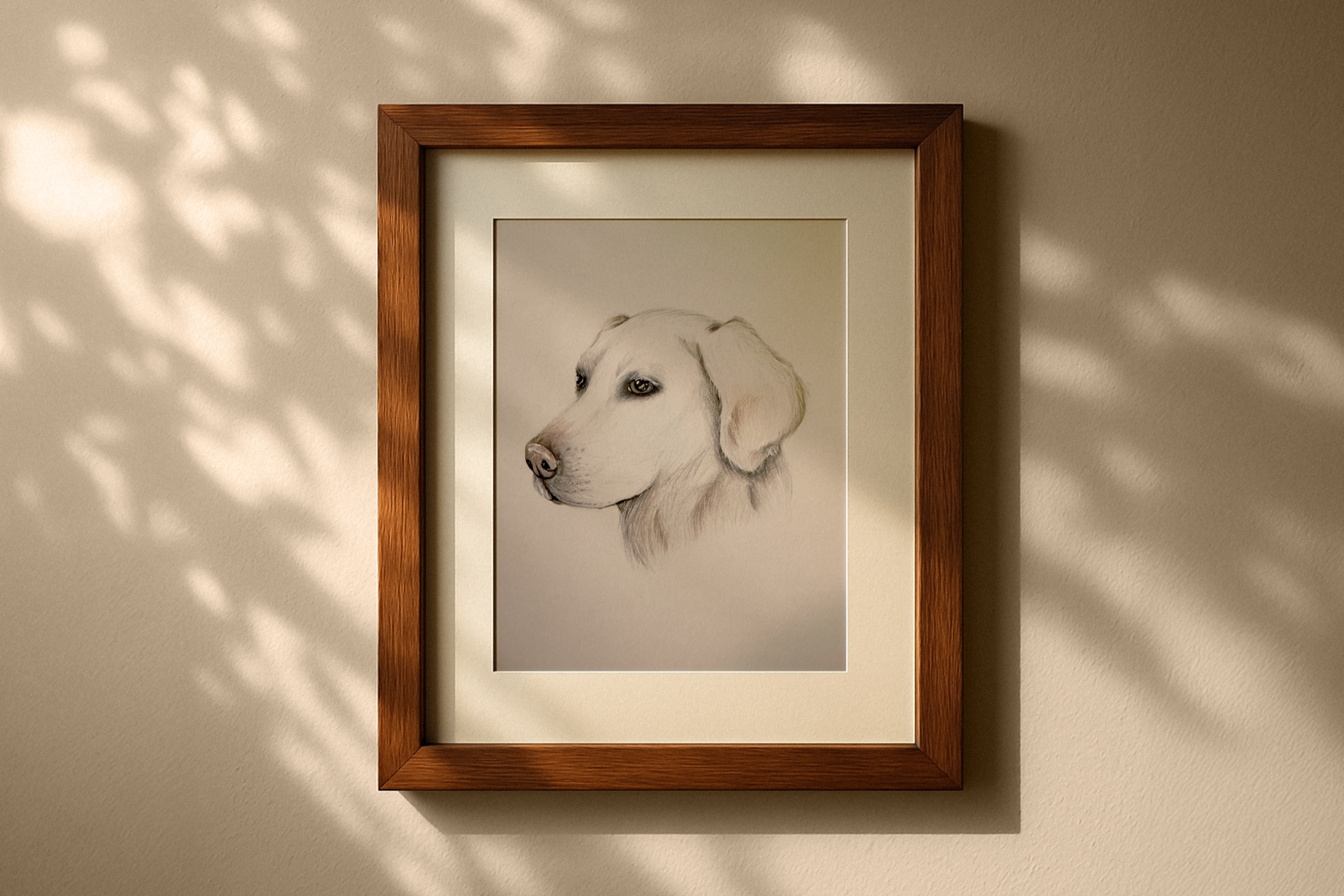 Each portrait is drawn by hand in my studio, capturing not just how they look, but how they feel.