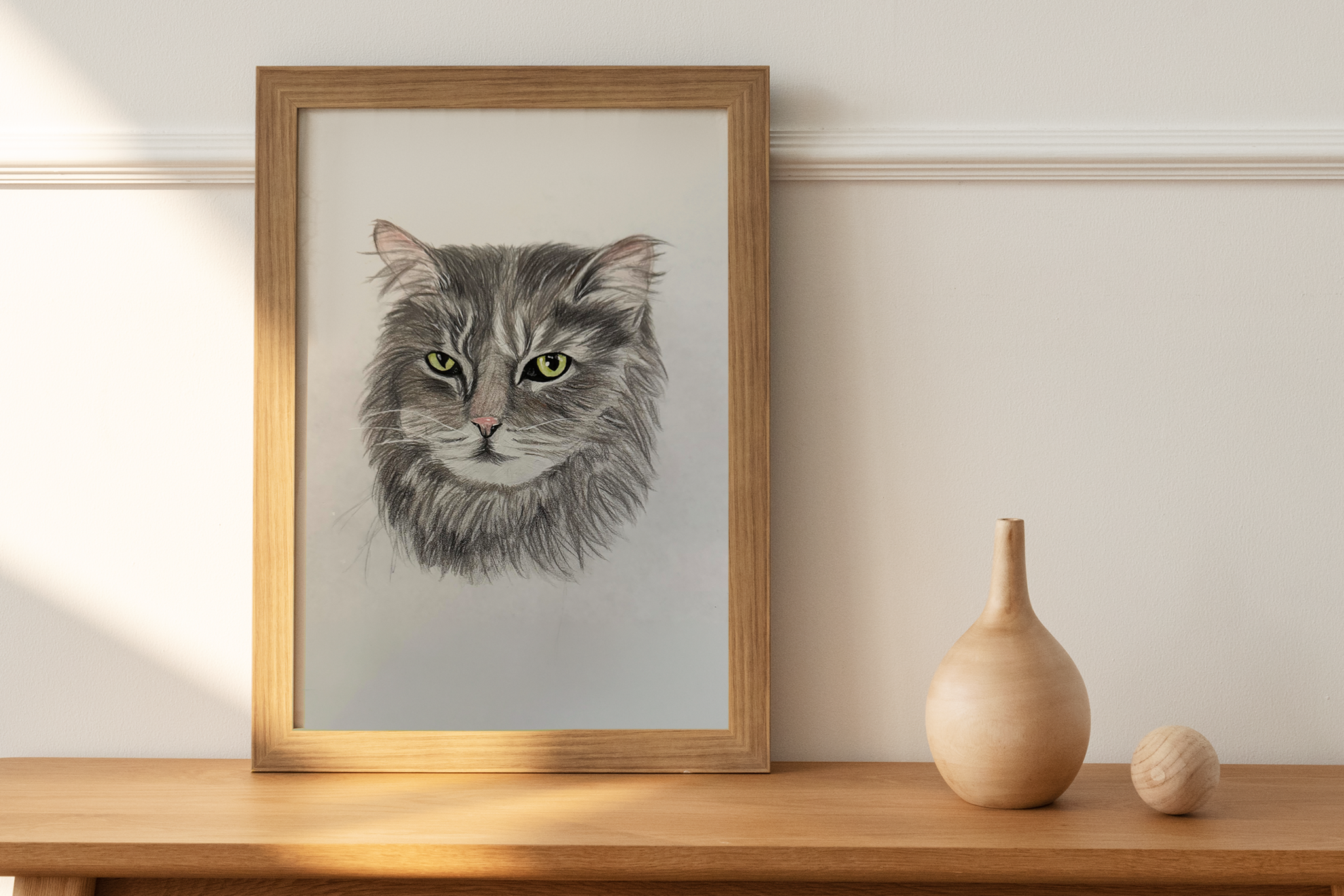 Each portrait is built layer by layer with colored pencil, focusing on the little details that make your pet feel like themselves. The softness in their eyes. The way their ears sit. The expression you know so well.